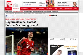 وننتقل إلى صحافة ألمانيا مع أحد أشهر الصحف الألمانية وهي صحيفة "بيلد" حيث كان عنوانها "حفلة بايرن في برشلونة"، في إشارة إلى النتيجة الكبيرة التي حققها العملاق الألماني بحسب وصف الصحيفة حيث أشادت بفريق البايرن ووصفته بالعملاق و المثالي، وذلك بعد أن واصل تفوقه على برشلونة وبنتيجة عريضة!.