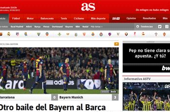 أما صحيفة "آس" فكان عنوانها "بايرن ميونخ يتلاعب ببرشلونة"، حيث أعربت الصحيفة عن حزنها لتوديع ممثل الاسبان بهذه الطريقة المخزية"بحسب وصفها".وتابعت بأن الفريق الكتلوني كان عاجزًا وضعيفًا للغاية ويرجع ذلك لغياب نجم الفريق "ليونيل ميسي" الذي ظل على مقاعد البدلاء طوال أحداث اللقاء.